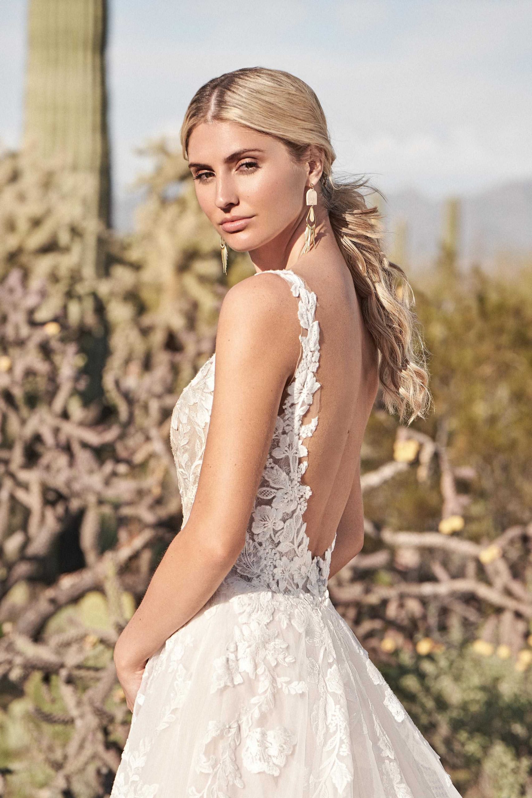 A-Line Gown with Plunging Illusion Sabrina Neckline and Low Back
