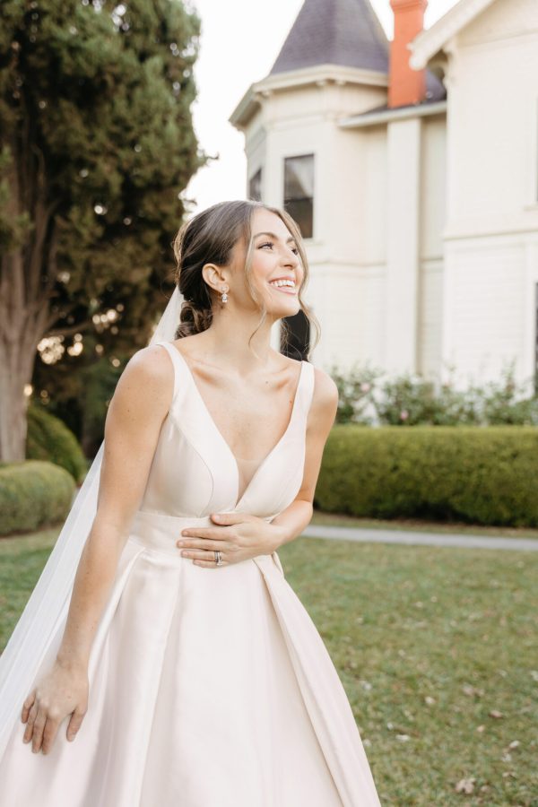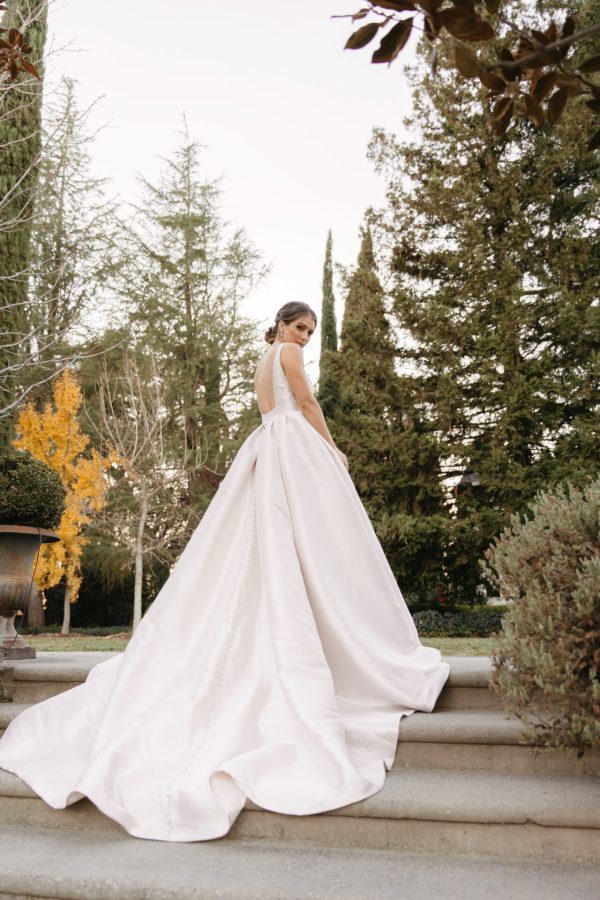 ROYAL SATIN PRINCESS BALLGOWN WEDDING DRESS WITH DEEP V-NECKLINE