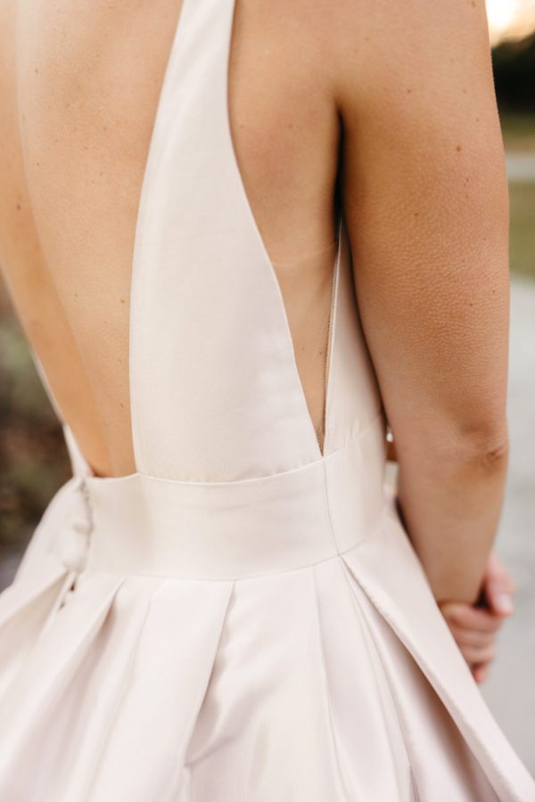 Make a dramatic statement down the aisle in this stunning princess bridal gown made with Shell Mikado fit for modern royalty. Elegant shoulder straps adorn the shoulder, complementing a deep V-neckline and banded waist. Subtle side cutouts lead to an chic squared open back detail accented by a row of fabric-covered buttons that trail down the back to the edge of the train. From the fitted waist, chic pleats give way to a voluminous ballgown skirt, concealing discreet and functional side pockets. For a royal princess bridal look that is still very much on-trend, Style 7953 captures timeless elegance with fashion-forward details for the modern princess bride. This gown is also available in plus sizes.