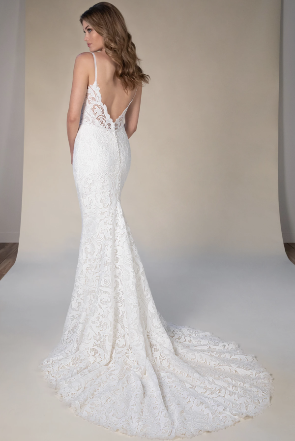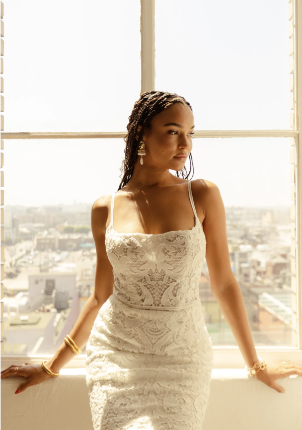 MODERN BOHO LACE COLUMN WEDDING DRESS WITH SQUARE NECKLINE