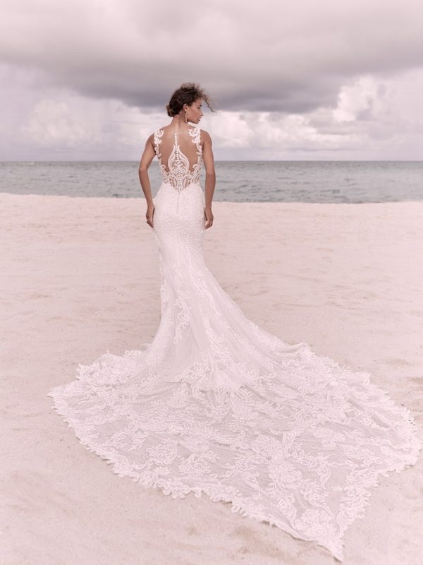 Elegant lace sheath bridal dress for vintage-inspired charm